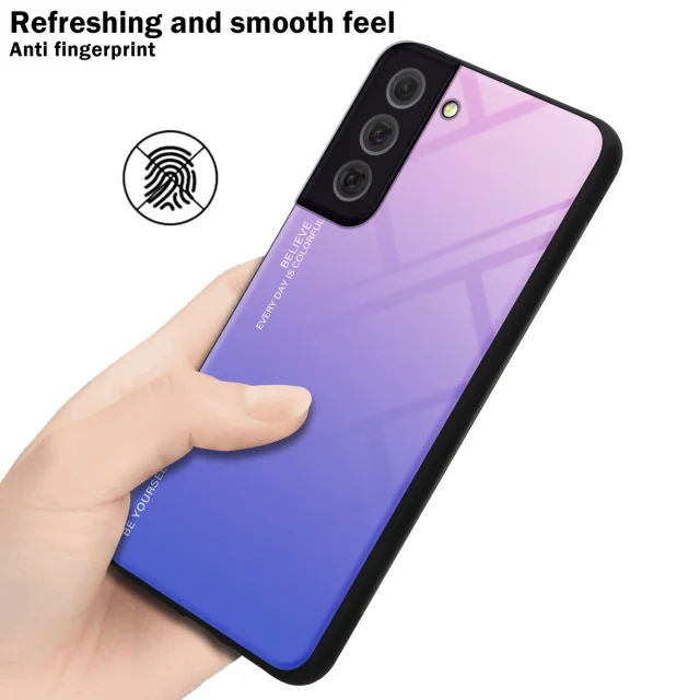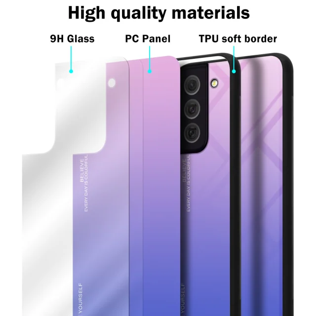 CADORABO Ohišje, združljiv s Samsungom v roza - modri - dvobarvni zaščitni pokrov iz silikona TPU in hrbta iz kaljenega stekla