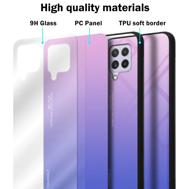 CADORABO Ohišje, združljiv s Samsungom v roza - modri - dvobarvni zaščitni pokrov iz silikona TPU in hrbta iz kaljenega stekla