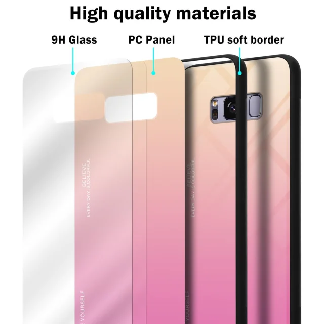 CADORABO Ohišje, združljiv s Samsungom v rumeni - roza - dvobarvni zaščitni pokrov iz silikona TPU in hrbta iz kaljenega stekla