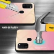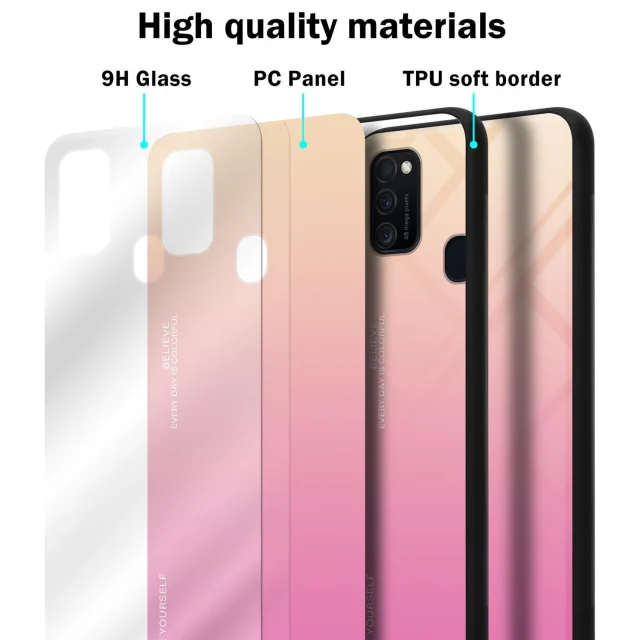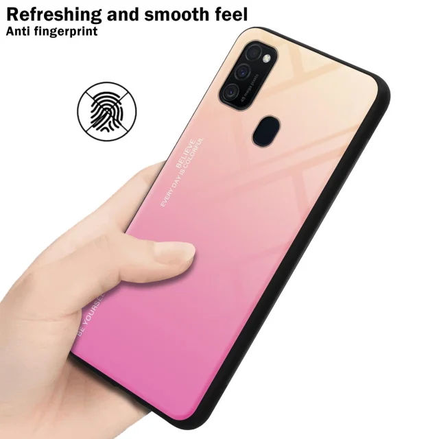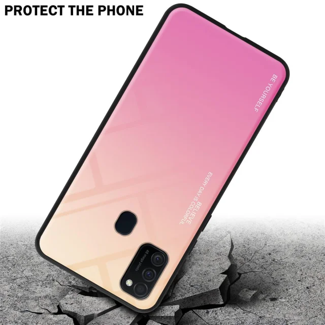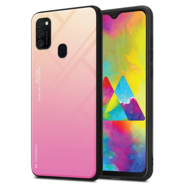 CADORABO Ohišje, združljiv s Samsungom v rumeni - roza - dvobarvni zaščitni pokrov iz silikona TPU in hrbta iz kaljenega stekla