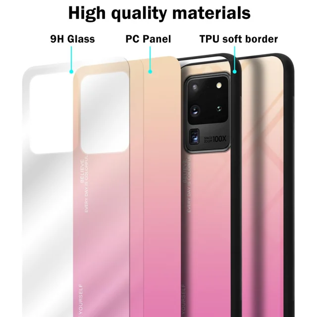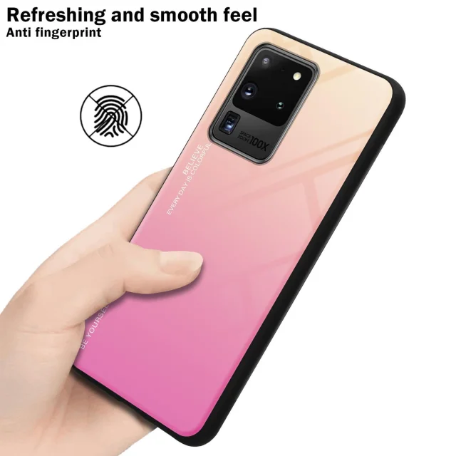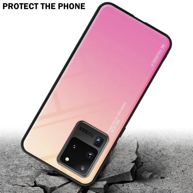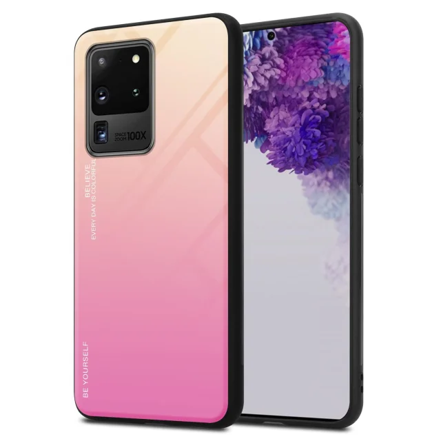 CADORABO Ohišje, združljiv s Samsungom v rumeni - roza - dvobarvni zaščitni pokrov iz silikona TPU in hrbta iz kaljenega stekla
