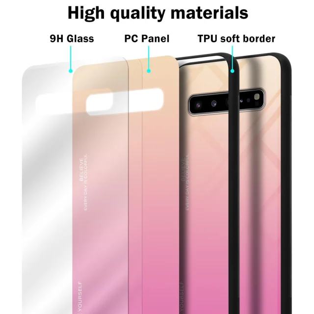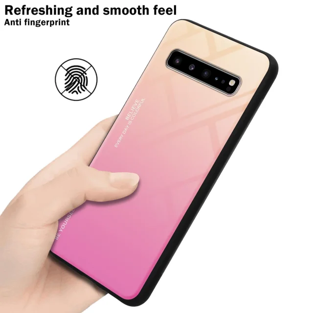 CADORABO Ohišje, združljiv s Samsungom v rumeni - roza - dvobarvni zaščitni pokrov iz silikona TPU in hrbta iz kaljenega stekla