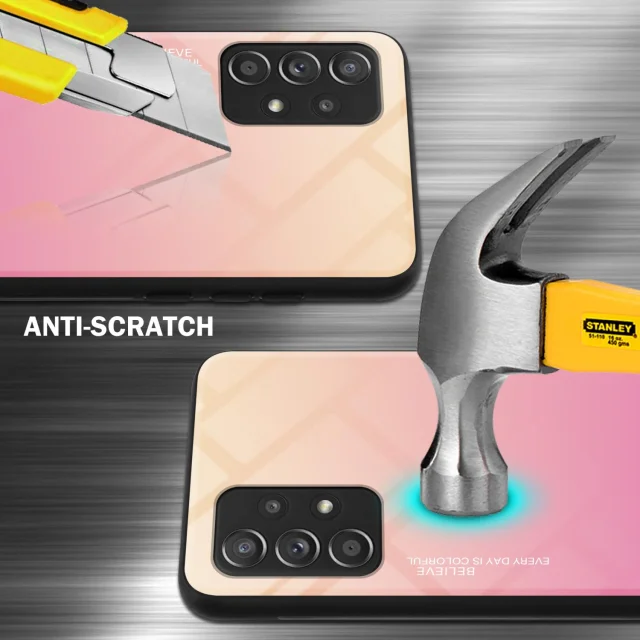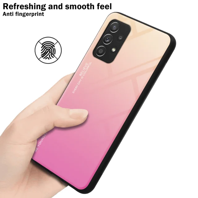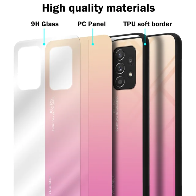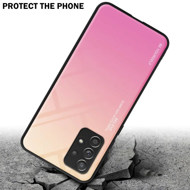 CADORABO Ohišje, združljiv s Samsungom v rumeni - roza - dvobarvni zaščitni pokrov iz silikona TPU in hrbta iz kaljenega stekla