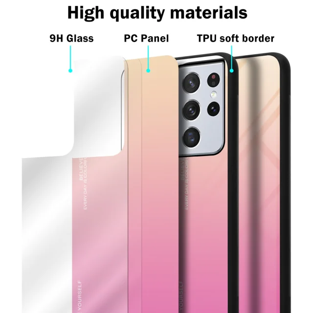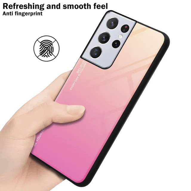 CADORABO Ohišje, združljiv s Samsungom v rumeni - roza - dvobarvni zaščitni pokrov iz silikona TPU in hrbta iz kaljenega stekla