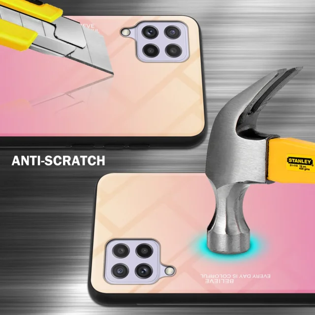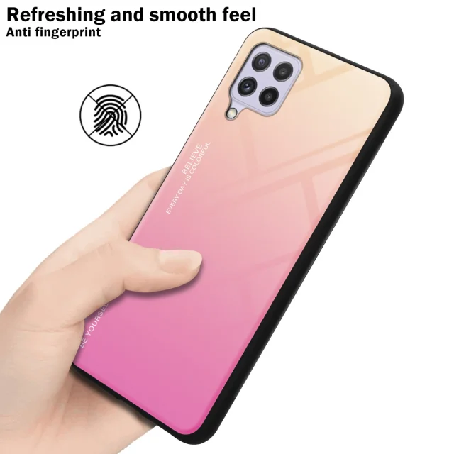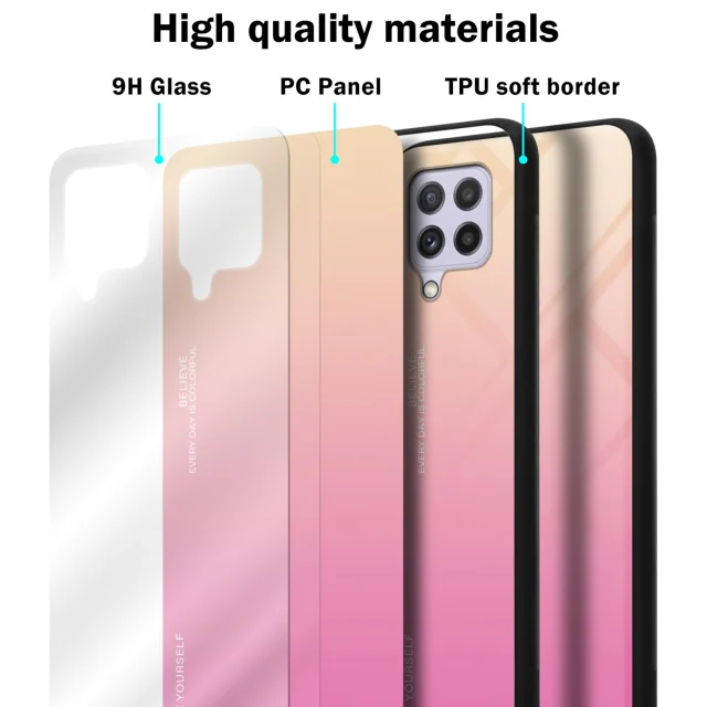CADORABO Ohišje, združljiv s Samsungom v rumeni - roza - dvobarvni zaščitni pokrov iz silikona TPU in hrbta iz kaljenega stekla
