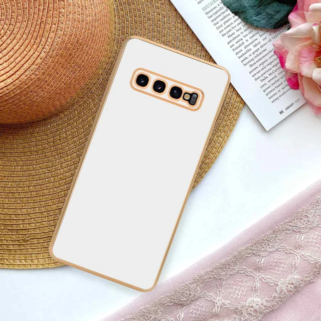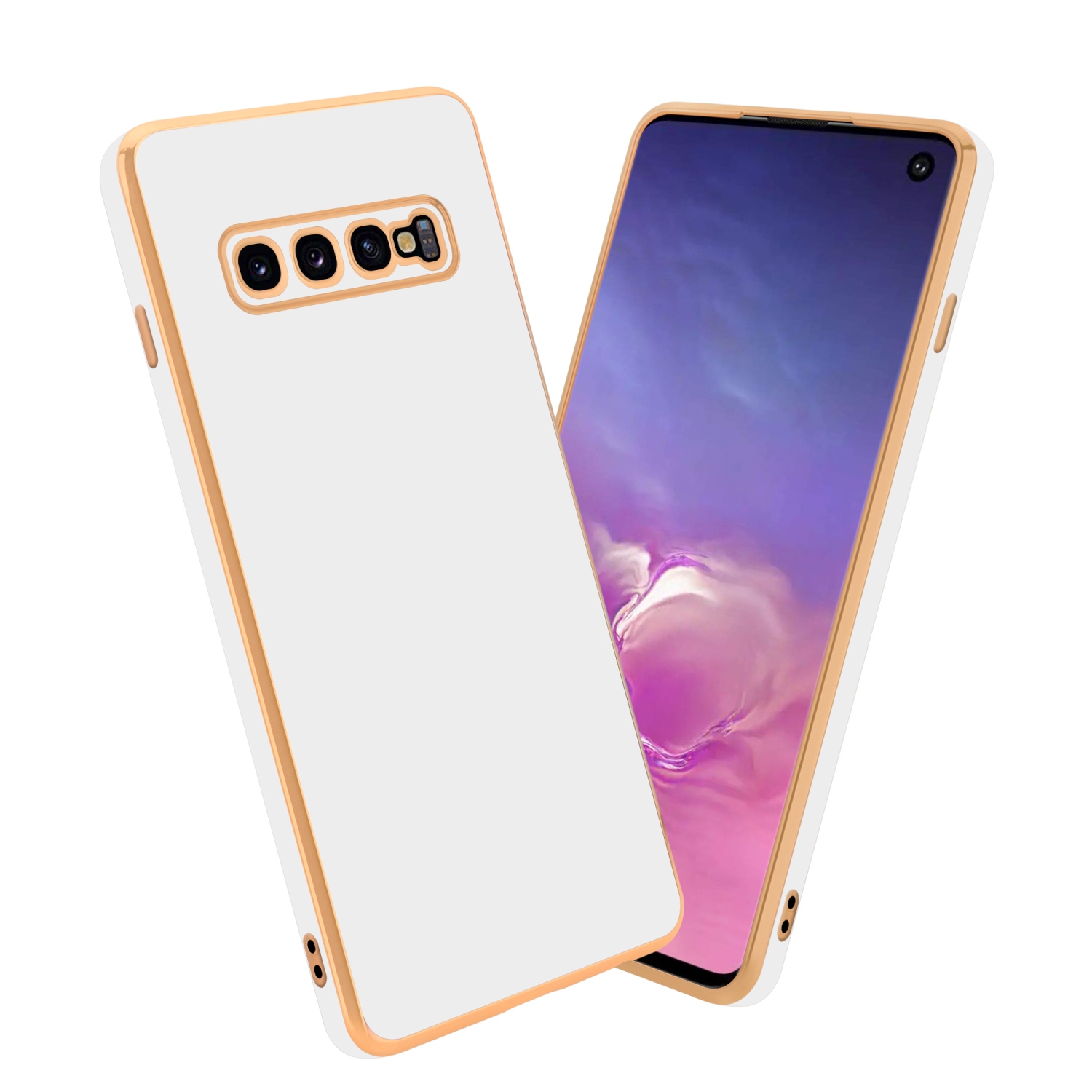 CADORABO Ohišje, združljiv s Samsungom v sijajnem belem - zlatu - zaščitni pokrov iz fleksibilnega silikona TPU in z zaščito pred kamero