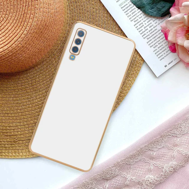CADORABO Ohišje, združljiv s Samsungom v sijajnem belem - zlatu - zaščitni pokrov iz fleksibilnega silikona TPU in z zaščito pred kamero
