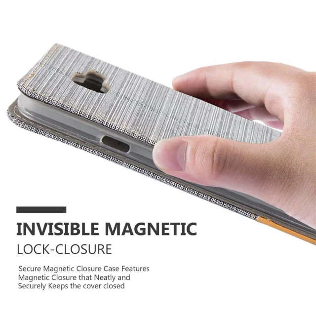 CADORABO Ohišje, združljiv s Samsungom v svetlo sivo rjavi barvi - zaščitni pokrov z magnetnim zapiranjem, stoječo funkcijo in režo za kartico