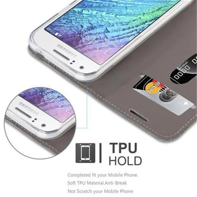 CADORABO Ohišje, združljiv s Samsungom v svetlo sivo rjavi barvi - zaščitni pokrov z magnetnim zapiranjem, stoječo funkcijo in režo za kartico