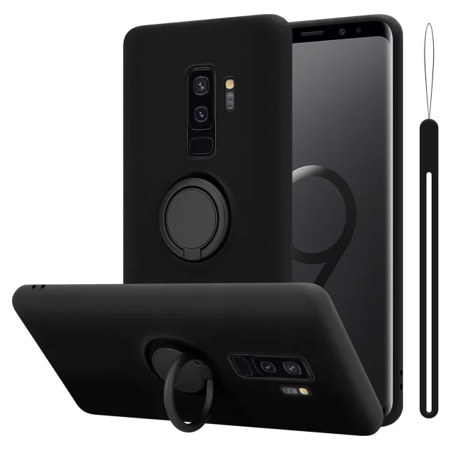 CADORABO Ohišje, združljiv s Samsungom v tekoči črni barvi - zaščitni pokrov iz fleksibilnega silikona TPU z obročem