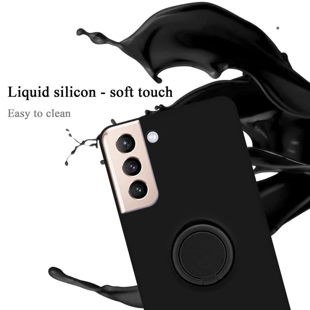 CADORABO Ohišje, združljiv s Samsungom v tekoči črni barvi - zaščitni pokrov iz fleksibilnega silikona TPU z obročem