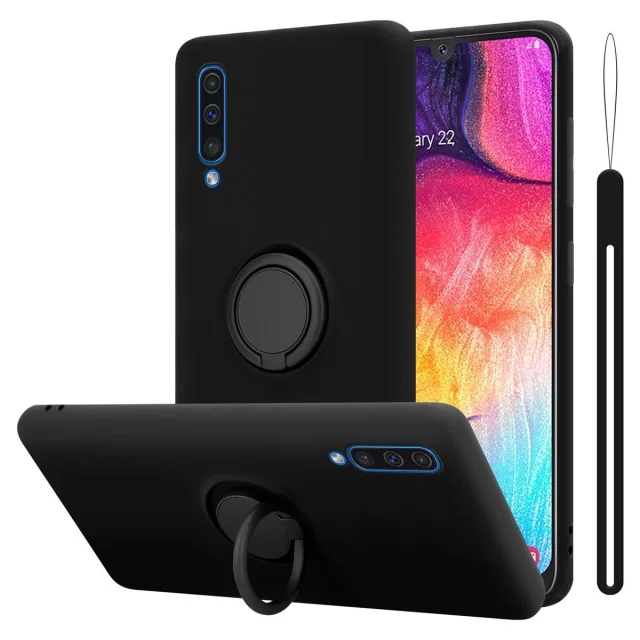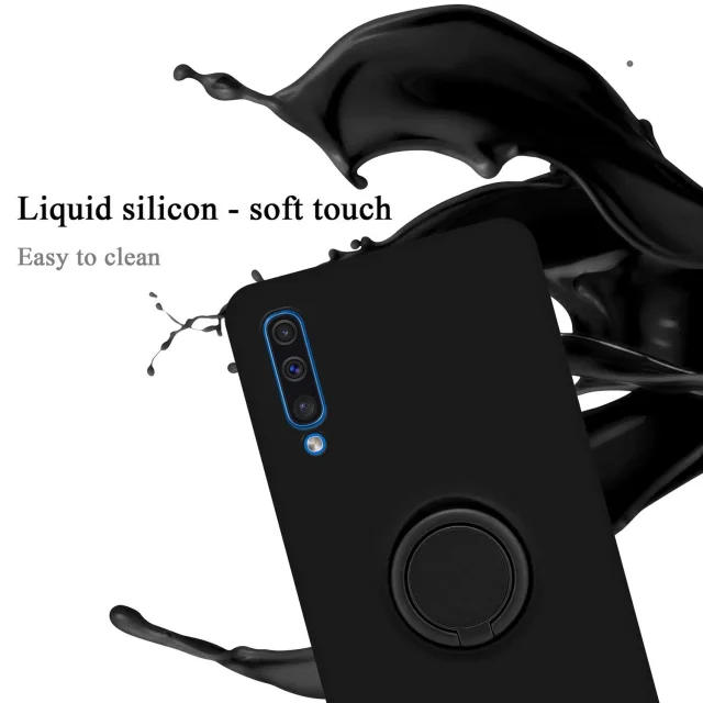 CADORABO Ohišje, združljiv s Samsungom v tekoči črni barvi - zaščitni pokrov iz fleksibilnega silikona TPU z obročem