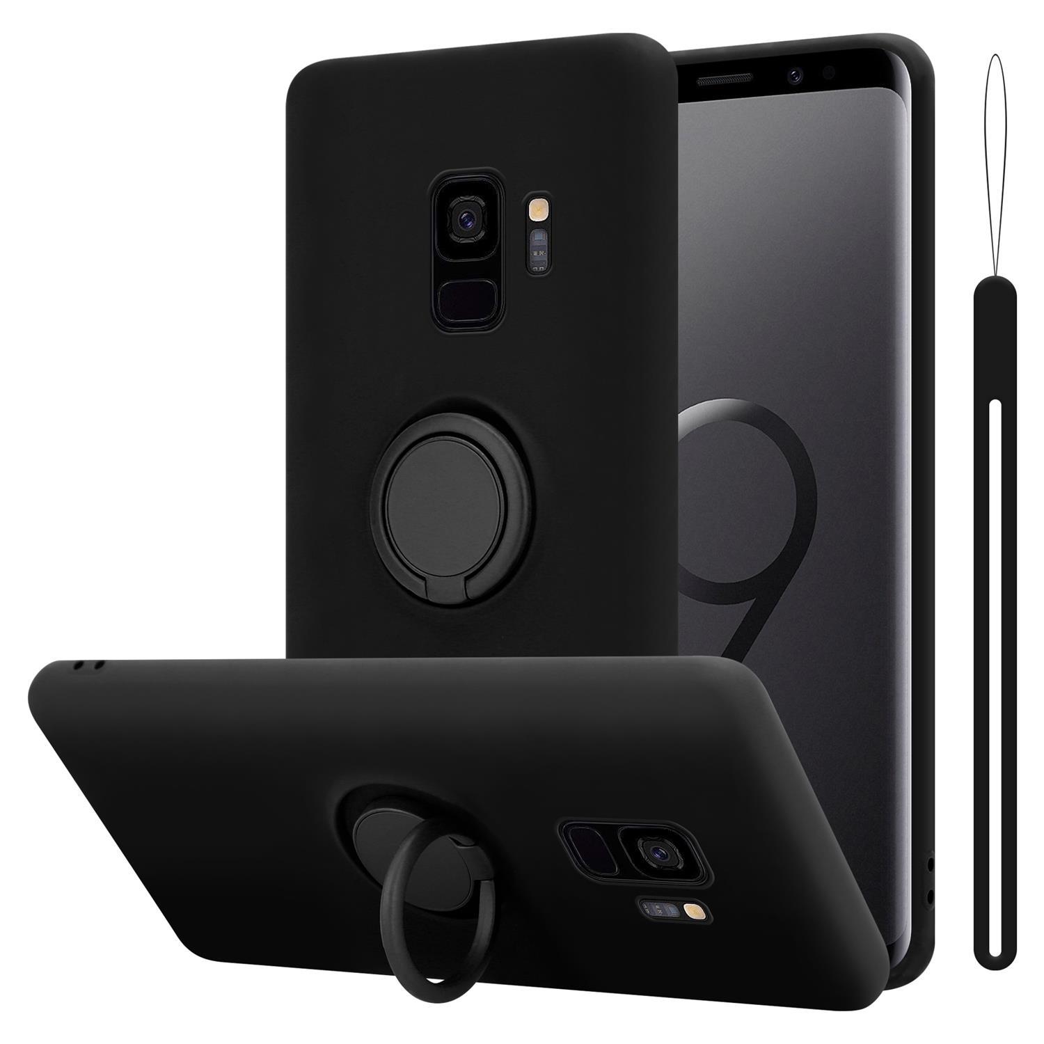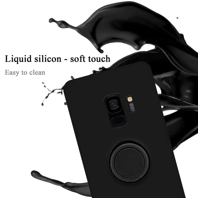 CADORABO Ohišje, združljiv s Samsungom v tekoči črni barvi - zaščitni pokrov iz fleksibilnega silikona TPU z obročem