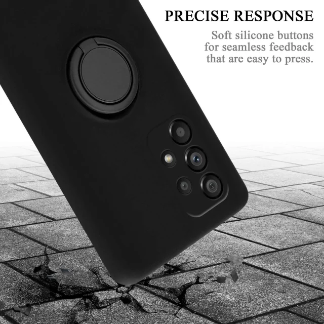 CADORABO Ohišje, združljiv s Samsungom v tekoči črni barvi - zaščitni pokrov iz fleksibilnega silikona TPU z obročem