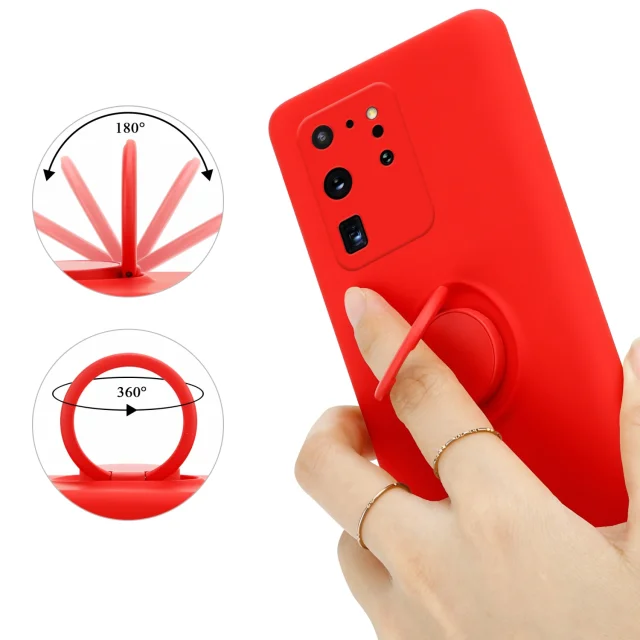 CADORABO Ohišje, združljiv s Samsungom v tekoči rdeči barvi - zaščitni pokrov, narejen iz fleksibilnega silikona TPU z obročem