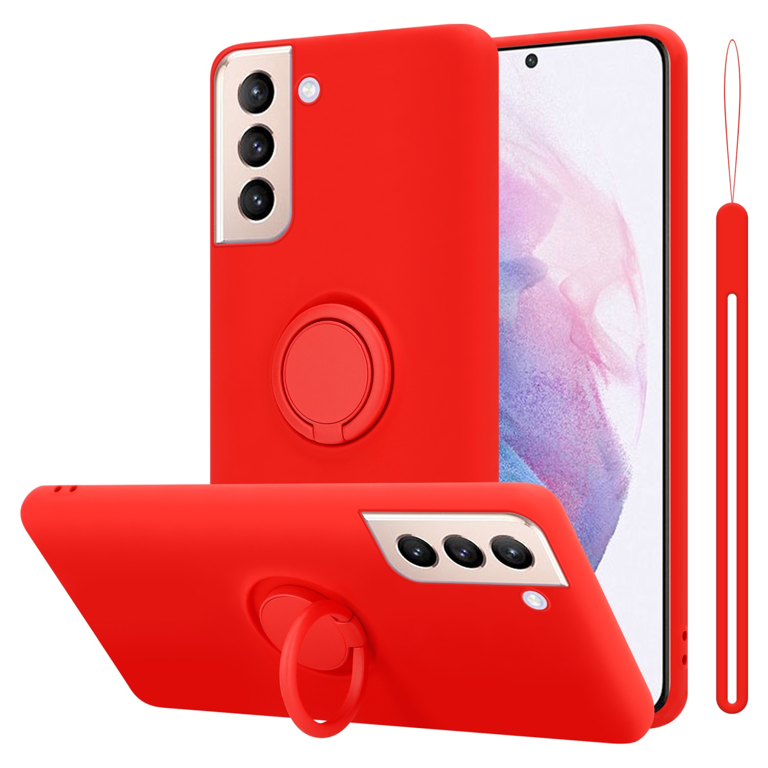 CADORABO Ohišje, združljiv s Samsungom v tekoči rdeči barvi - zaščitni pokrov, narejen iz fleksibilnega silikona TPU z obročem