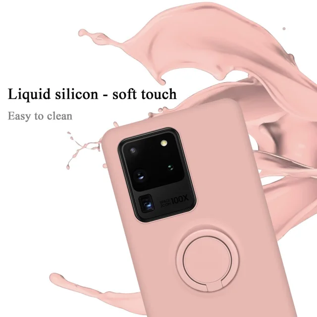 CADORABO Ohišje, združljiv s Samsungom v tekoči roza barvi - zaščitni pokrov iz fleksibilnega silikona TPU z obročem