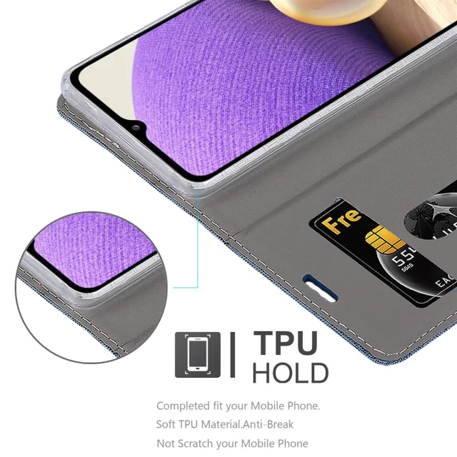 CADORABO Ohišje, združljiv s Samsungom v temno modri barvi - zaščitni pokrov z magnetnim zapiranjem, stoječo funkcijo in režo za kartico
