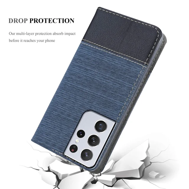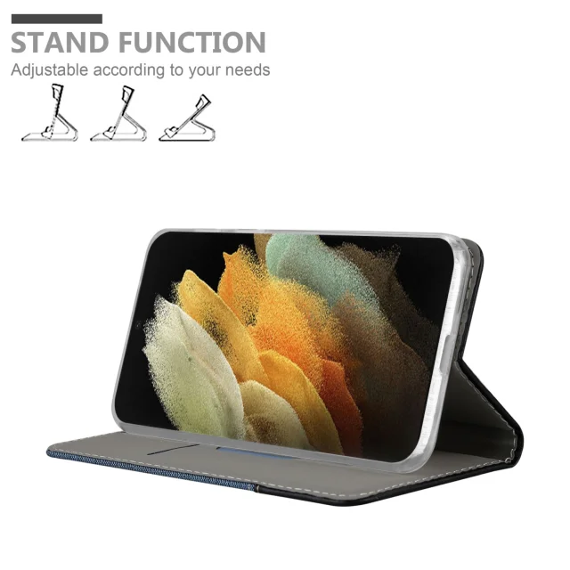 CADORABO Ohišje, združljiv s Samsungom v temno modri barvi - zaščitni pokrov z magnetnim zapiranjem, stoječo funkcijo in režo za kartico