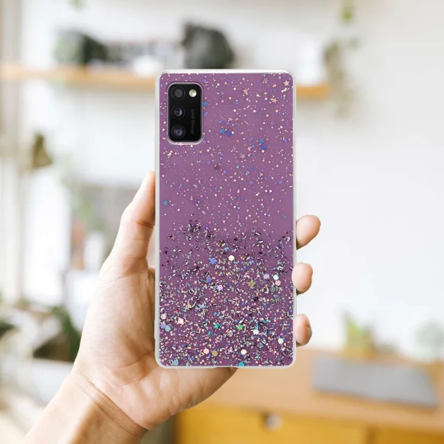 CADORABO Ohišje, združljiv s Samsungom v vijolični barvi z bleščicami - zaščitni pokrov iz fleksibilnega silikona TPU s penečimi bleščicami