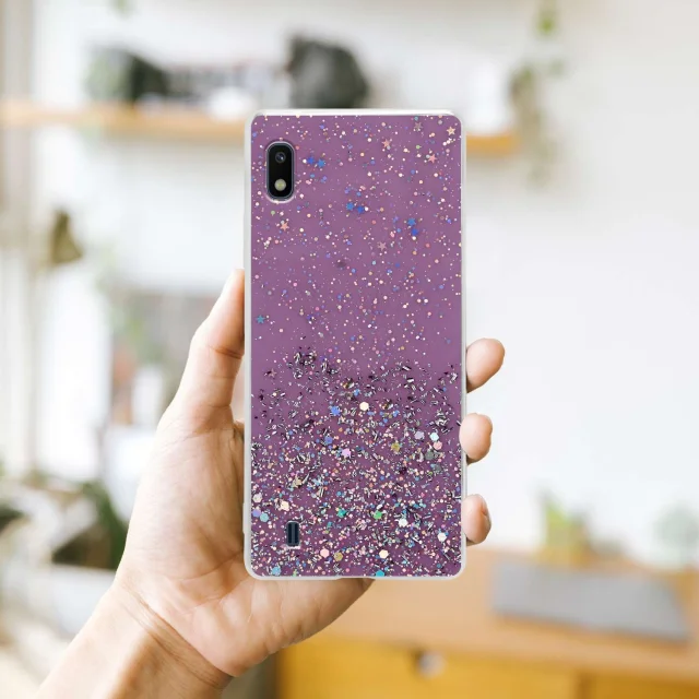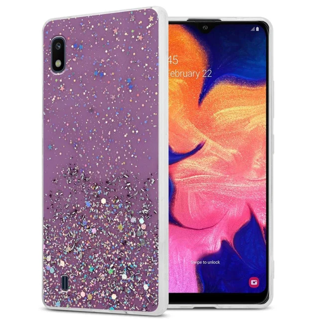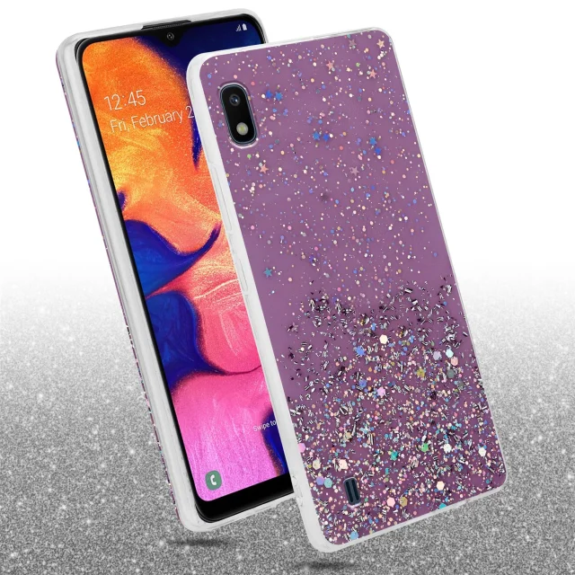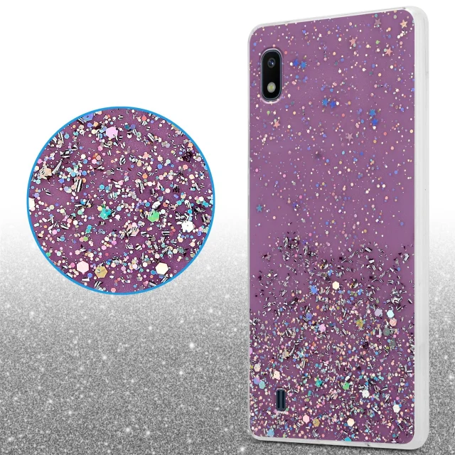 CADORABO Ohišje, združljiv s Samsungom v vijolični barvi z bleščicami - zaščitni pokrov iz fleksibilnega silikona TPU s penečimi bleščicami