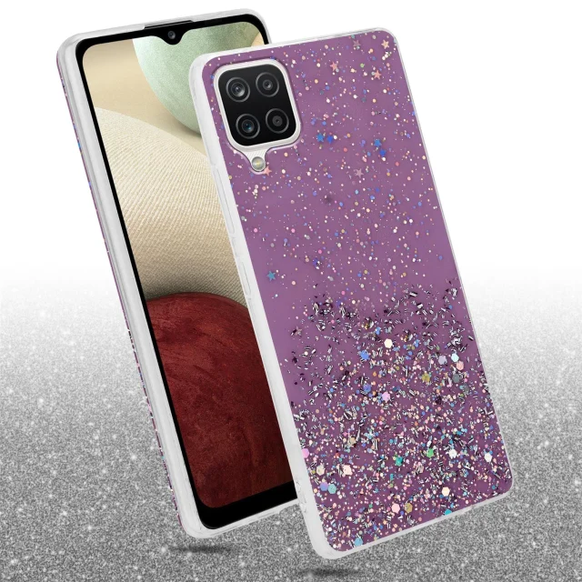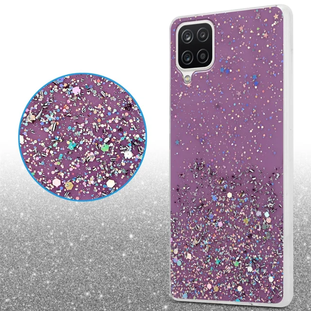 CADORABO Ohišje, združljiv s Samsungom v vijolični barvi z bleščicami - zaščitni pokrov iz fleksibilnega silikona TPU s penečimi bleščicami