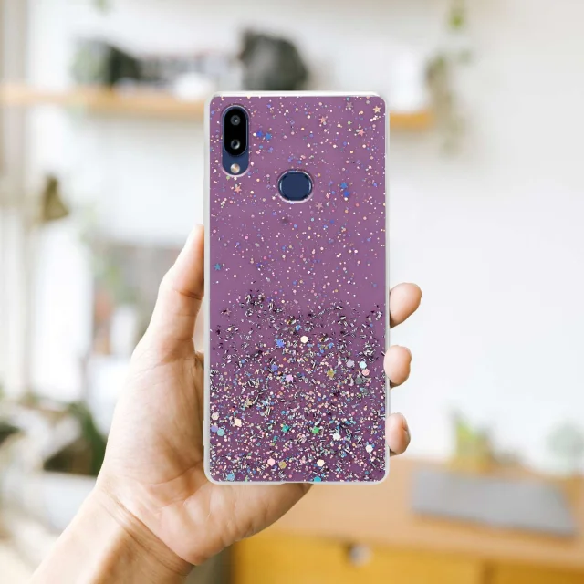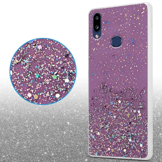 CADORABO Ohišje, združljiv s Samsungom v vijolični barvi z bleščicami - zaščitni pokrov iz fleksibilnega silikona TPU s penečimi bleščicami