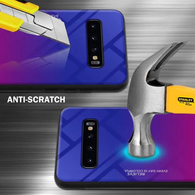 CADORABO Ohišje, združljiv s Samsungom v vijolični - rdeči - dvobarvni zaščitni pokrov iz silikona TPU in hrbta iz kaljenega stekla