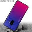 CADORABO Ohišje, združljiv s Samsungom v vijolični - rdeči - dvobarvni zaščitni pokrov iz silikona TPU in hrbta iz kaljenega stekla