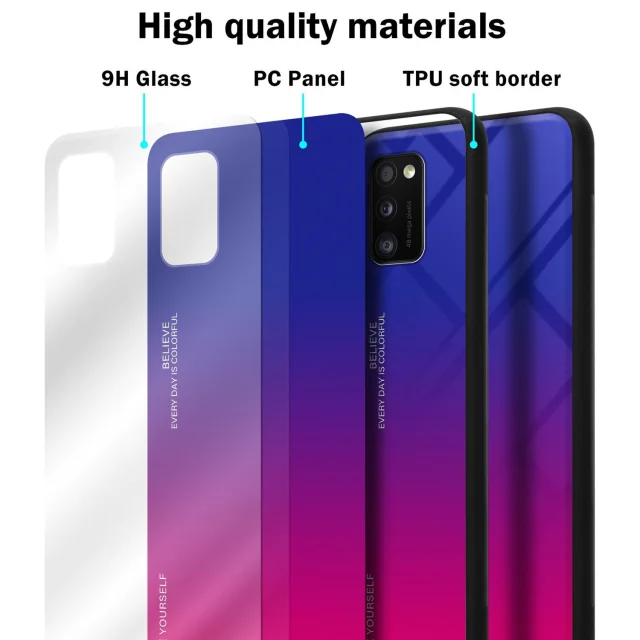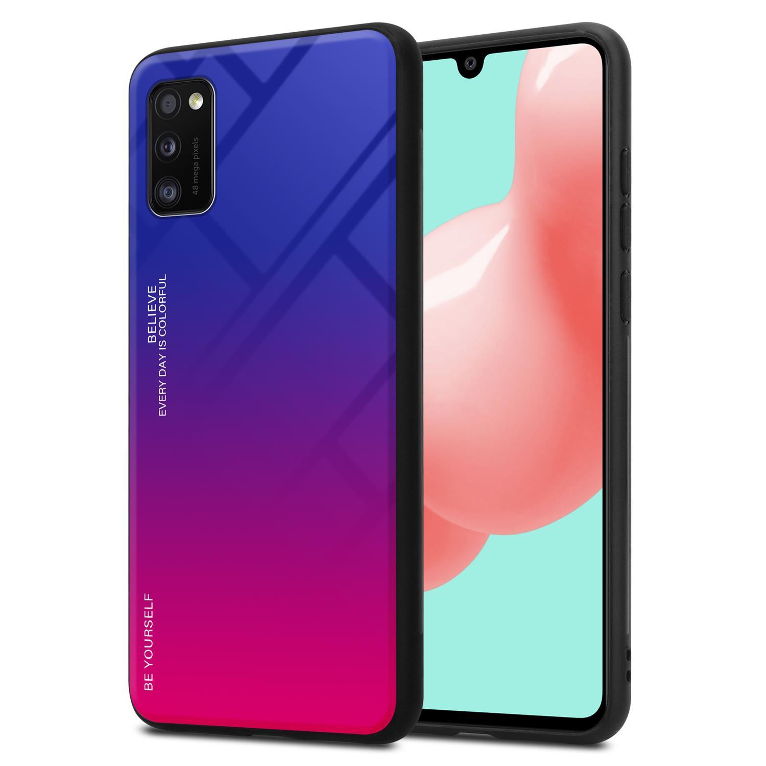 CADORABO Ohišje, združljiv s Samsungom v vijolični - rdeči - dvobarvni zaščitni pokrov iz silikona TPU in hrbta iz kaljenega stekla