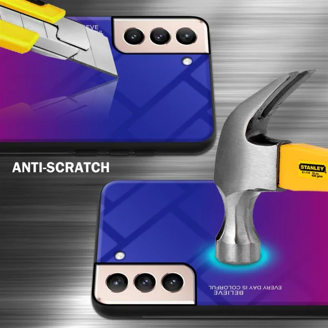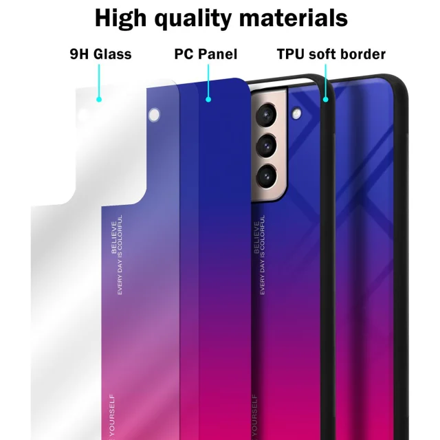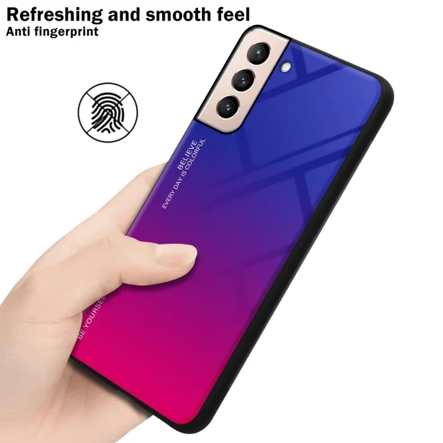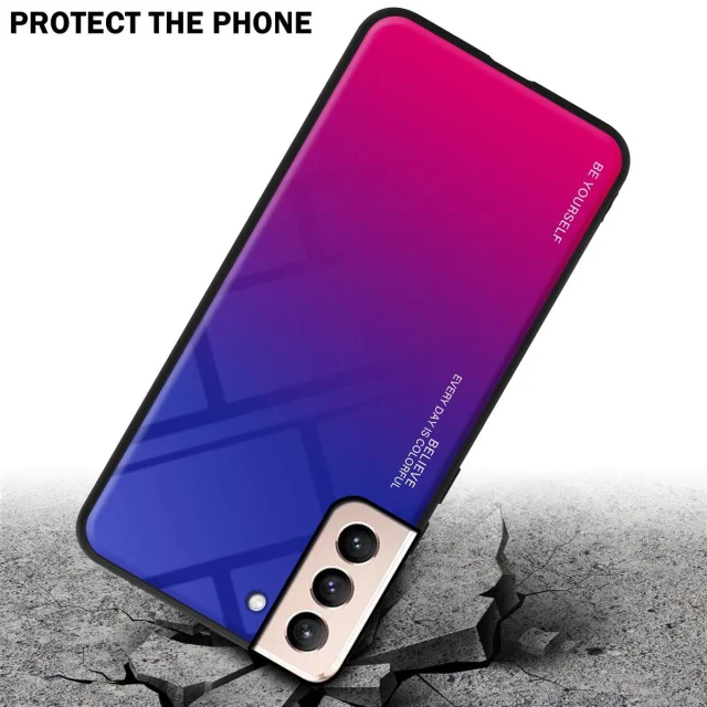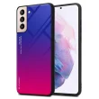 CADORABO Ohišje, združljiv s Samsungom v vijolični - rdeči - dvobarvni zaščitni pokrov iz silikona TPU in hrbta iz kaljenega stekla