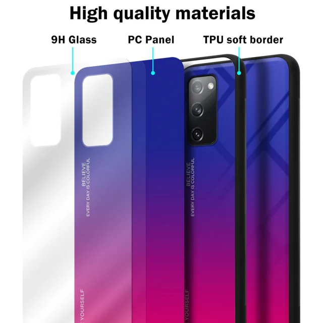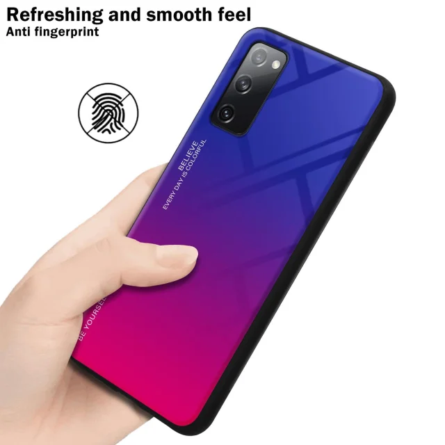 CADORABO Ohišje, združljiv s Samsungom v vijolični - rdeči - dvobarvni zaščitni pokrov iz silikona TPU in hrbta iz kaljenega stekla