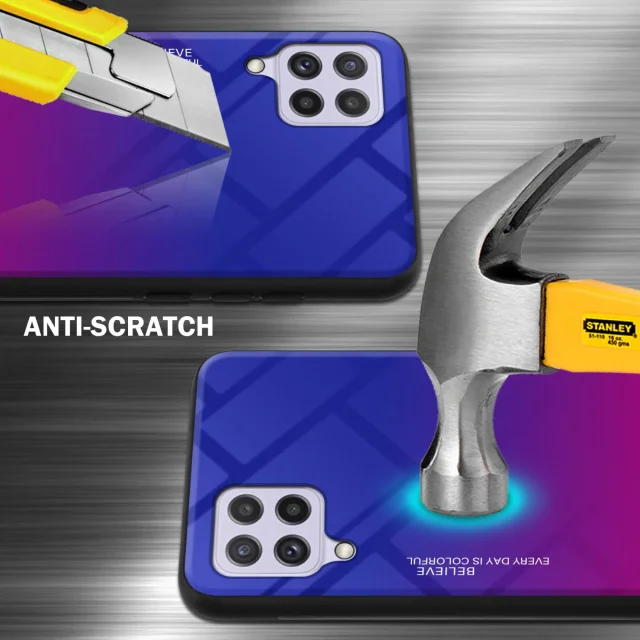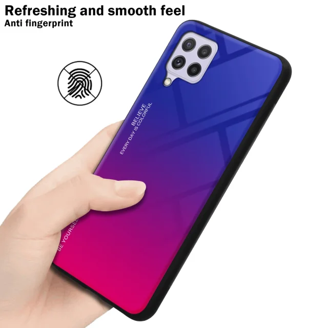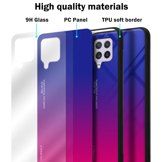 CADORABO Ohišje, združljiv s Samsungom v vijolični - rdeči - dvobarvni zaščitni pokrov iz silikona TPU in hrbta iz kaljenega stekla