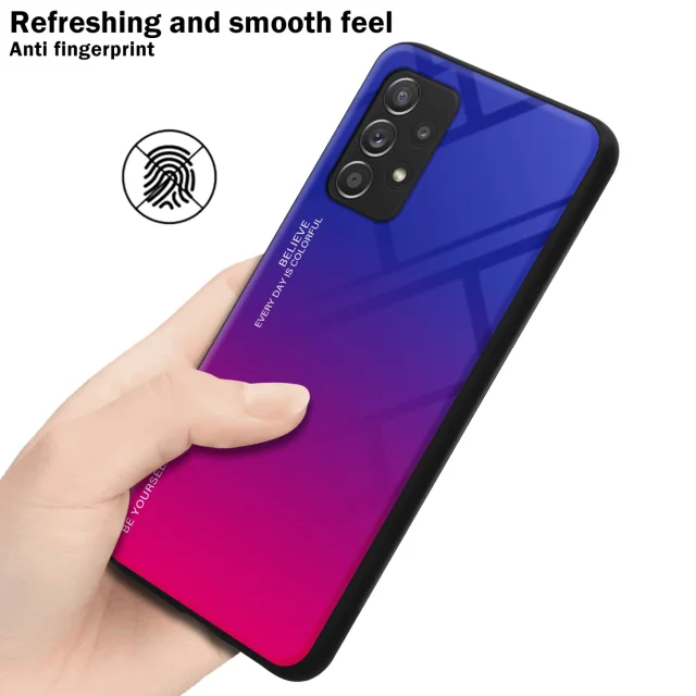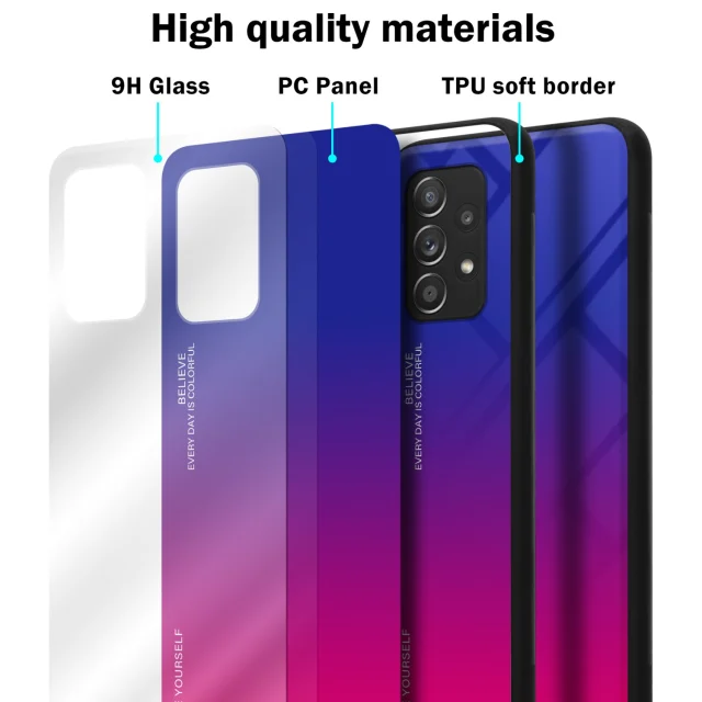 CADORABO Ohišje, združljiv s Samsungom v vijolični - rdeči - dvobarvni zaščitni pokrov iz silikona TPU in hrbta iz kaljenega stekla