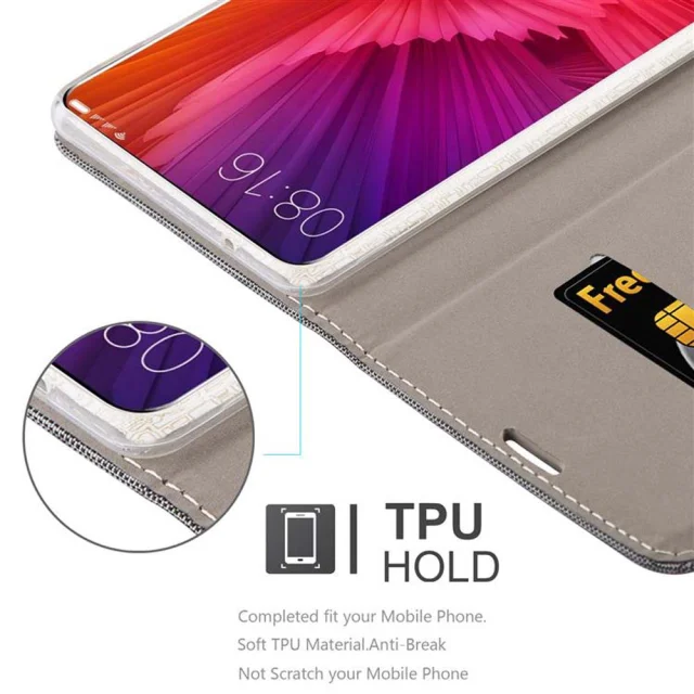 CADORABO Ohišje, združljiv s Xiaomi v sivi črni barvi - zaščitni pokrov z magnetnim zapiranjem, stoječo funkcijo in režo za kartico