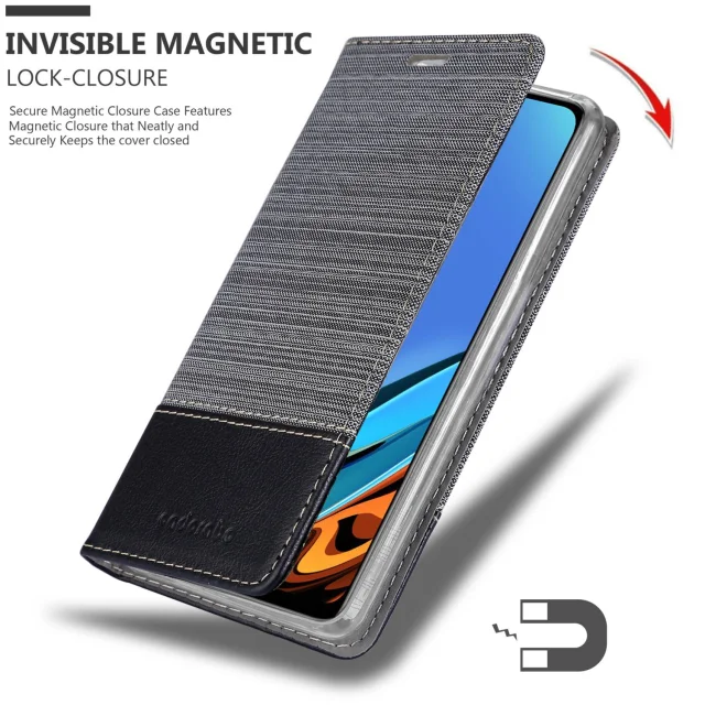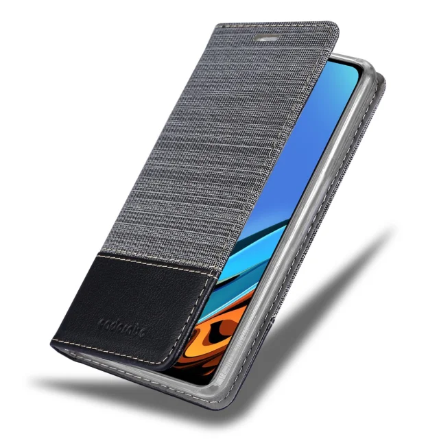 CADORABO Ohišje, združljiv s Xiaomi v sivi črni barvi - zaščitni pokrov z magnetnim zapiranjem, stoječo funkcijo in režo za kartico