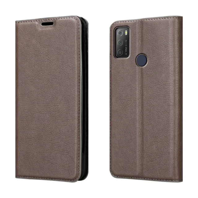 CADORABO Ohišje, združljiv z Alcatelom v kavi Brown - zaščitni pokrov z magnetnim zapiranjem, stoječo funkcijo in režo za kartico
