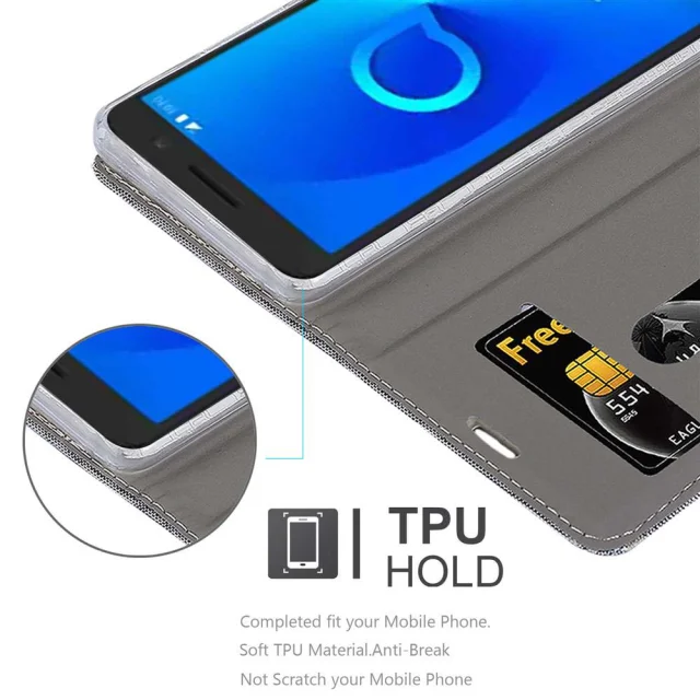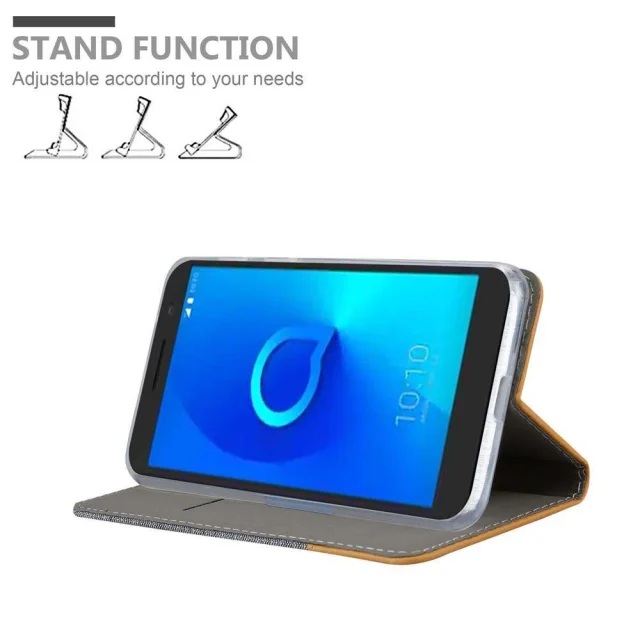 CADORABO Ohišje, združljiv z Alcatelom v svetlo sivi rjavi barvi - zaščitni pokrov z magnetnim zapiranjem, stoječo funkcijo in režo za kartico