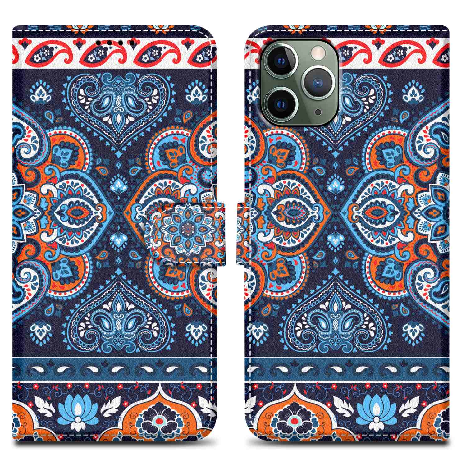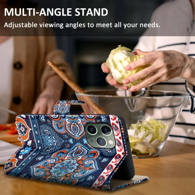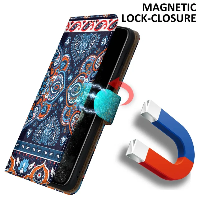 CADORABO Ohišje, združljiv z Apple - Design Blue Mandala št. 1 - Zaščitni pokrov z magnetnim zapiranjem, funkcijo stojala in režo za kartico