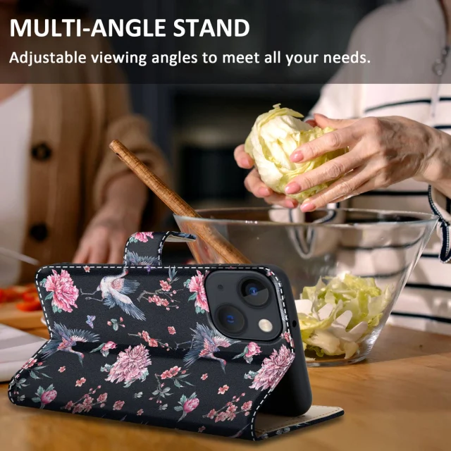 CADORABO Ohišje, združljiv z Apple - Design Crane & Flowers št. 9 - Zaščitni pokrov z magnetnim zapiranjem, funkcijo stojala in režo za kartico
