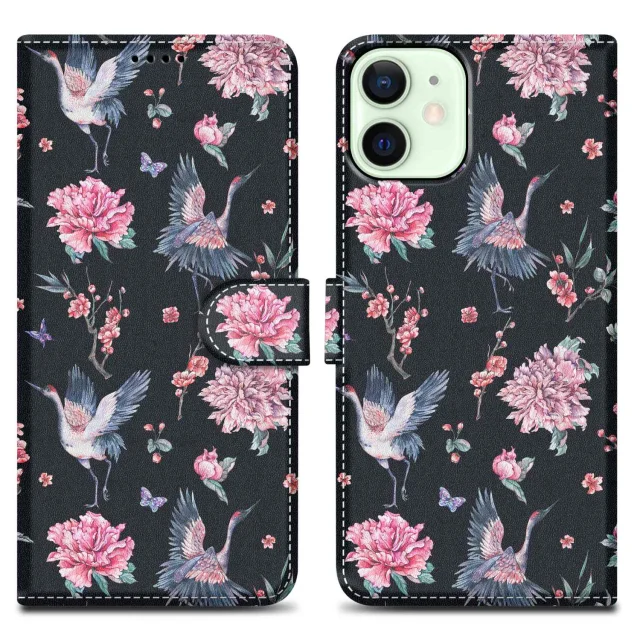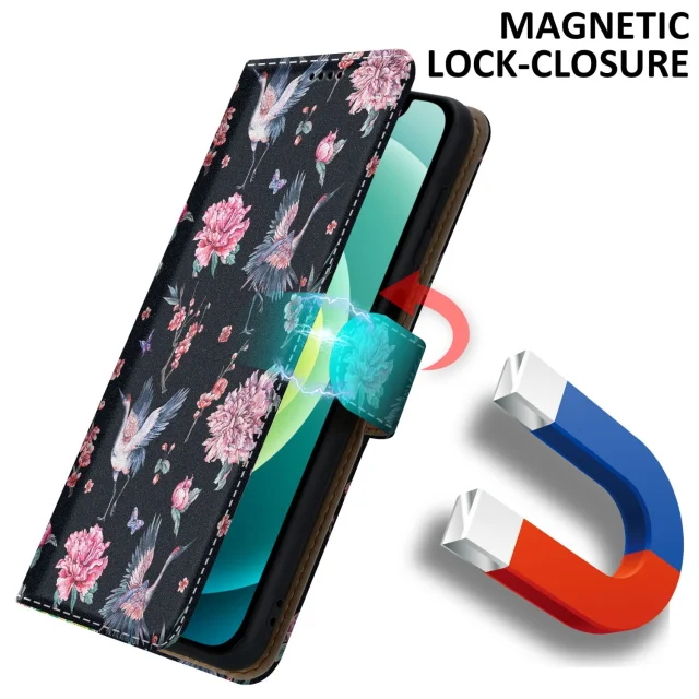CADORABO Ohišje, združljiv z Apple - Design Crane & Flowers št. 9 - Zaščitni pokrov z magnetnim zapiranjem, funkcijo stojala in režo za kartico