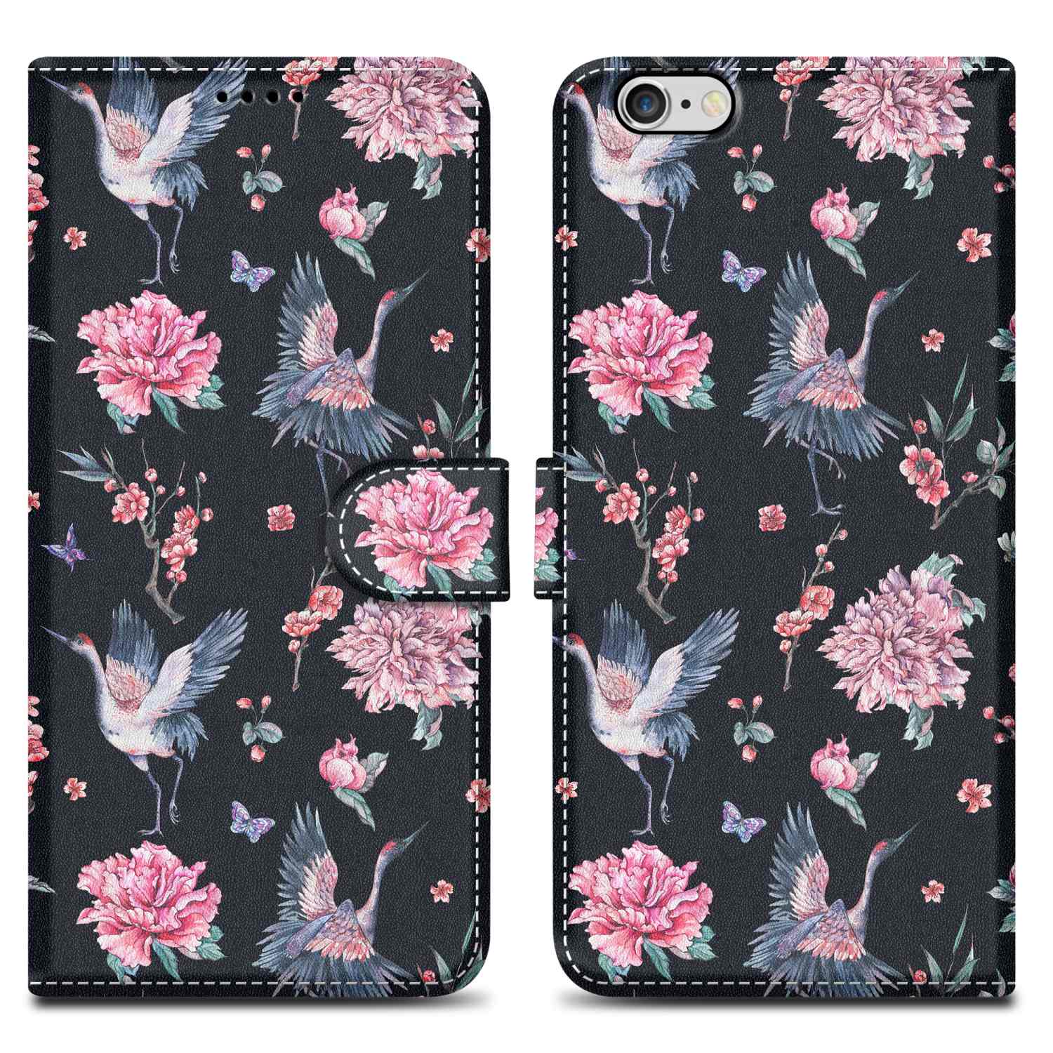 CADORABO Ohišje, združljiv z Apple - Design Crane & Flowers št. 9 - Zaščitni pokrov z magnetnim zapiranjem, funkcijo stojala in režo za kartico