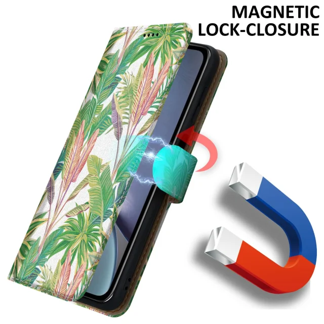 CADORABO Ohišje, združljiv z Apple - Design Green Rainforest št. 8 - Zaščitni pokrov z magnetnim zapiranjem, funkcijo stojala in režo za kartico