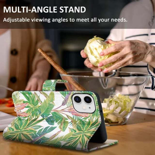 CADORABO Ohišje, združljiv z Apple - Design Green Rainforest št. 8 - Zaščitni pokrov z magnetnim zapiranjem, funkcijo stojala in režo za kartico