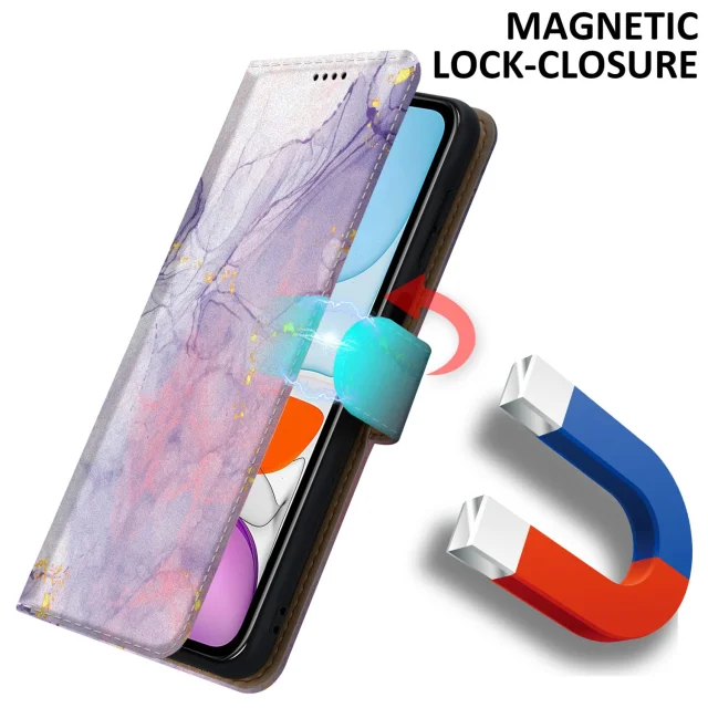 CADORABO Ohišje, združljiv z Apple - Design Pink Purple Marmor št. 5 - Zaščitni pokrov z magnetnim zapiranjem, funkcijo stojala in režo za kartico