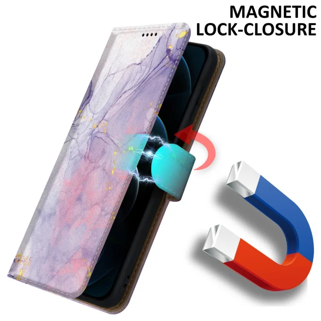 CADORABO Ohišje, združljiv z Apple - Design Pink Purple Marmor št. 5 - Zaščitni pokrov z magnetnim zapiranjem, funkcijo stojala in režo za kartico