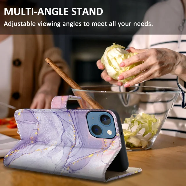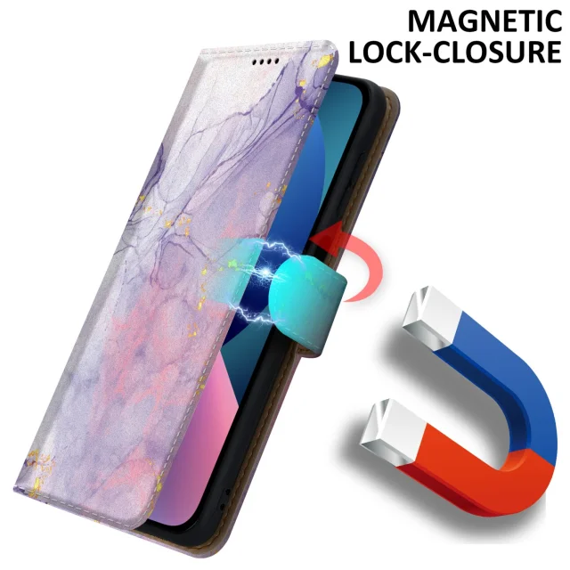 CADORABO Ohišje, združljiv z Apple - Design Pink Purple Marmor št. 5 - Zaščitni pokrov z magnetnim zapiranjem, funkcijo stojala in režo za kartico