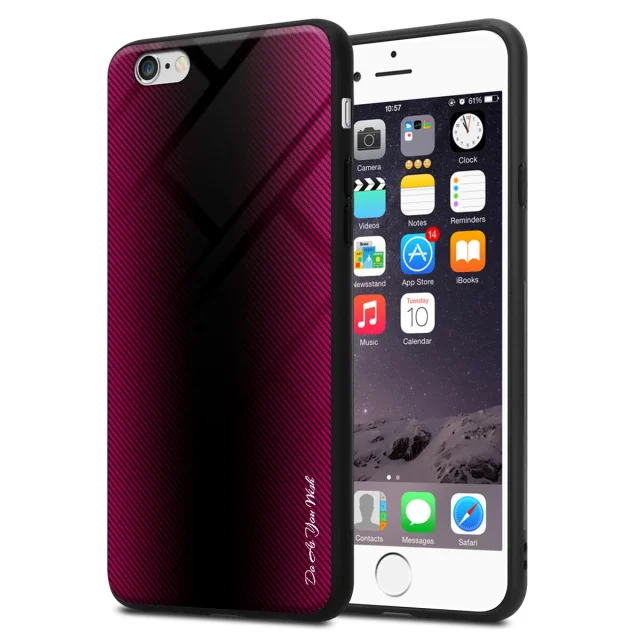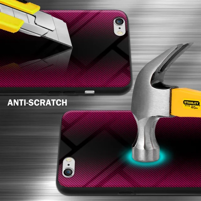 CADORABO Ohišje, združljiv z Apple - Stripe Optics v Crimson Pink - Zaščitni pokrov iz silikona TPU in hrbta iz kaljenega stekla