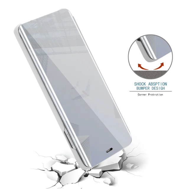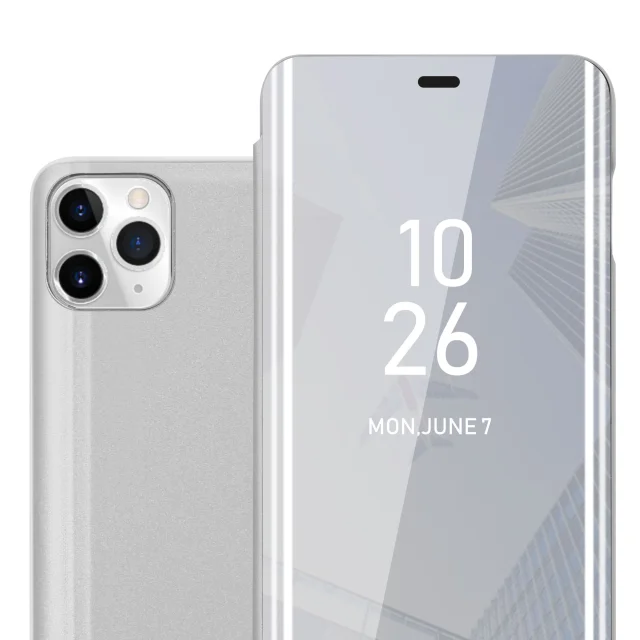CADORABO Ohišje, združljiv z Apple v Agate Silver - Clear View Zrcalo Zaščitni pokrov s funkcijo stojala 360 stopinj zaščita
