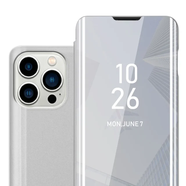 CADORABO Ohišje, združljiv z Apple v Agate Silver - Clear View Zrcalo Zaščitni pokrov s funkcijo stojala 360 stopinj zaščita